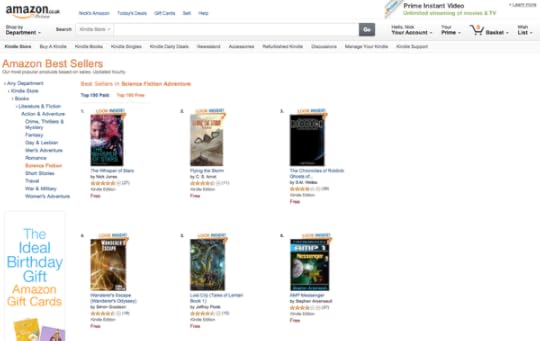Oh, and finally. Check out this lovely screenshot of ‘The Whisper of Stars’ It sat at No.1 in the charts for a whole weekend. Okay, so it was the No.1 FREE book but still. 4,500 downloads is a nice feeling. It’s dropped off a cliff now but it was nice while it lasted : ) Thanks to all of you for helping promote and review the book which has undoubtably helped it along.