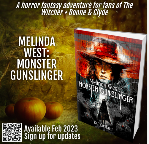 In case you missed it, the cover reveal for MELINDA WEST: MONSTER GUNSLINGER came out a few weeks ago! I have been a huge fan of UK-based Carrion House, so I was thrilled he was able to do the cover (check out more of his amazing artwork here). Luke perfectly captured the vibe and style I was hoping for. The book will be coming out from Brigids Gate Press in Feb 2023. You can stay updated on the preorder date by signing up for newsletter alerts.