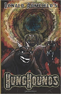The plot seems pretty straight forward, but here is where Armfeld shines. He throws so much at you that you can't help but keep reading just to see how it all ends. He never loses sight of where he wants the novel to go and the characters that he has created only add to the bizarre nature of the story. Our narrator it seems is just thrown into this and he has no clue what he's doing, but that's okay because a lot of times none of the others do either. Only Dawn seems to have a clue as to how to save them all and she is the true hero of Hung Hounds.