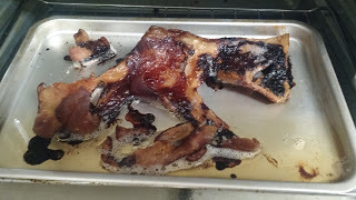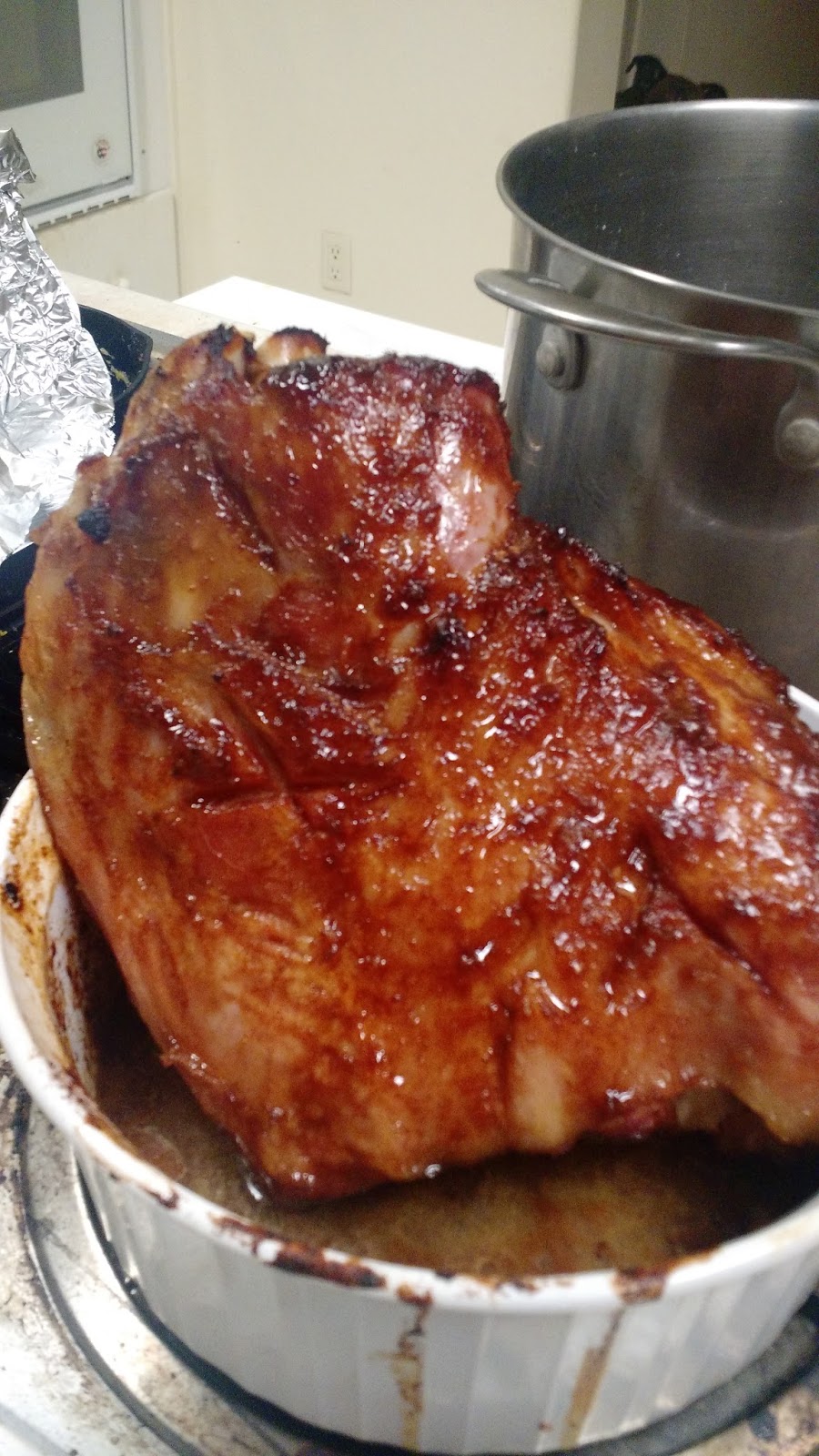 I had the skin from the ham left over, yes it's skin, so I soaked that in the leftover sauce and toasted it to make chicharonnes.