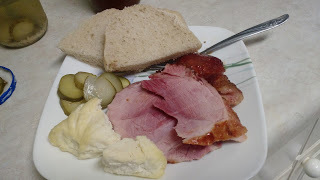 And for dinner tonight I decided to make a honey mustard glazed country ham. The sweet salty combo worked out perfectly.
