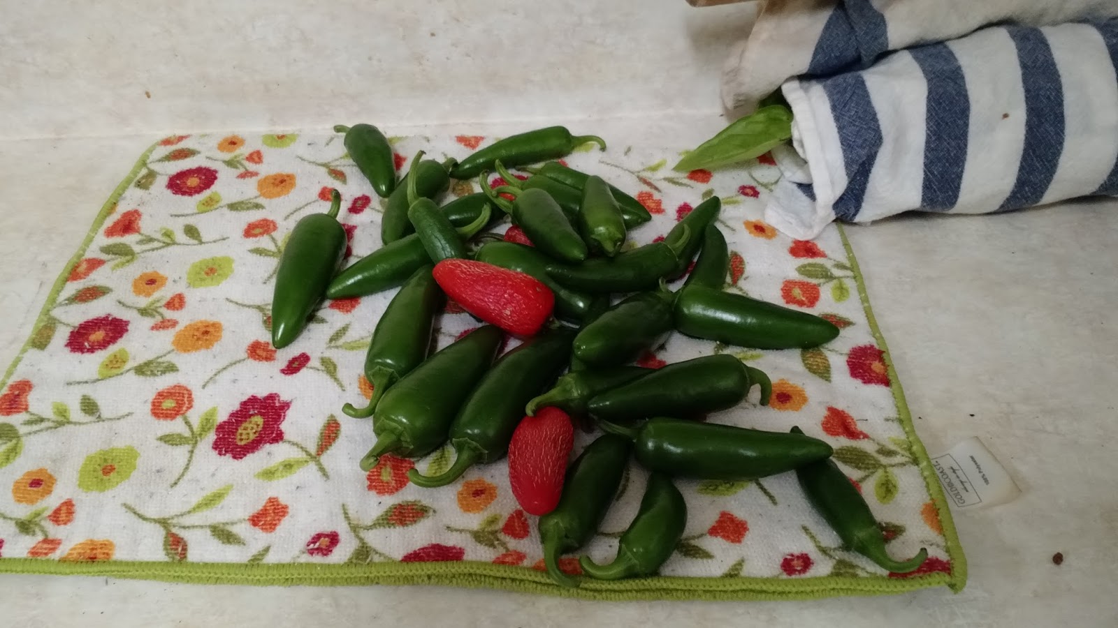I trimmed the herbs, picked cucumbers, peppers, and tomatoes. Tilled the soil and leveled it back out after all the floods we've been having. Drained the water out of the compost and refilled it. Trimmed the citronella plants. Then I went inside, got some water, and explained to my husband that telling someone what they were going to do isn't the same thing as asking someone for help. He agreed cheerfully and left.