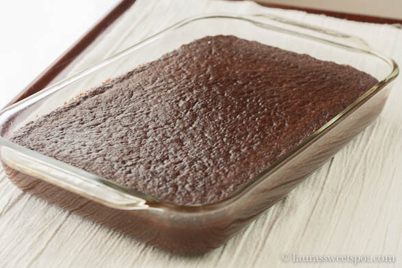 Because this cake is so dense and not very tall you can add extras to it immediately after baking if you want. Top it with jellies, peanut butter, chocolate bars, fudge, caramel, or pudding. You can also cut it and layer it into a pan for trifle or cake lasagnas or ice cream cakes.