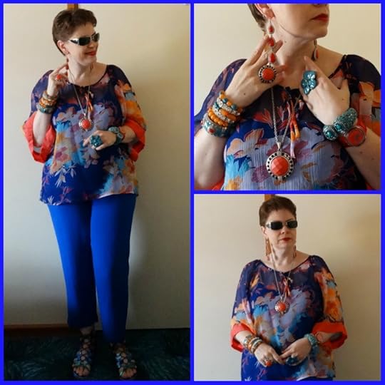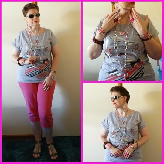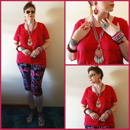 JEWELLERY: I matched patterns not colours this time, bangles, necklaces and rings from eBay, made the earrings.