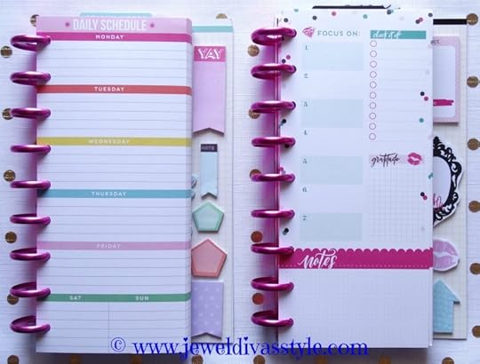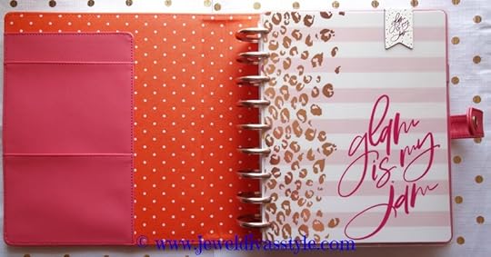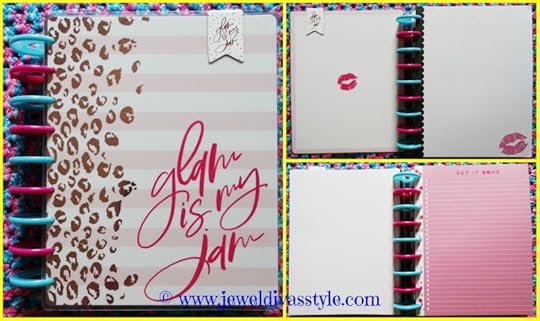 I added the ‘glam is my jam’ bookmark, and large pink and blue discs. The paper is all of the classic sized that I bought, from the kisses, to the ‘get it done’ pages.