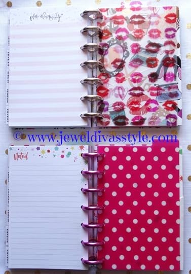 While shopping for Happy Planner goodies, I also bought all of the mini planner things I wanted, in both the Glam Girl line, and the Trendsetter line. After pulling apart classic planners, and rearranging all of the paper, and after buying the big set of rose gold discs to rearrange the classic Glam Girl planner, I had the medium sized discs left over for both of the minis in matching colours. I would be adding the dashboards, pockets, sticky notes and paper inserts to each one. I also needed covers.
