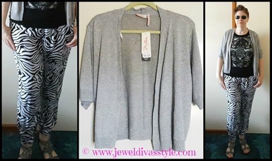 I got this silver cardigan for $15 from Millers, on sale. And while the pants are also Millers, they actually came from an op shop for $5.25. That means, with the prices of the top and shoes added in ($14.95/$30), this whole outfit cost me $65.20.
