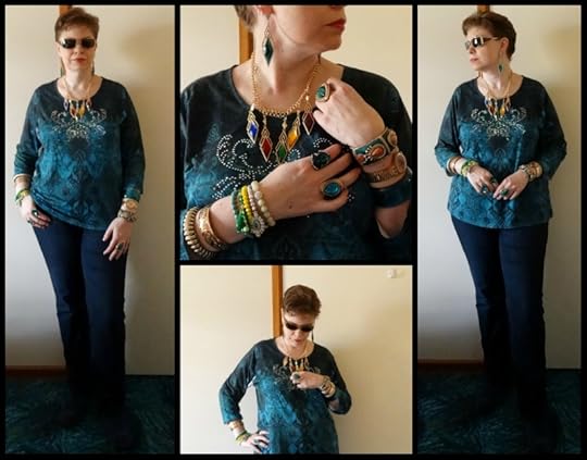 I bought these three pieces, the earrings are from Adorne for $5, the two rings from eBay. I paid for the blue one and got the green one for free.