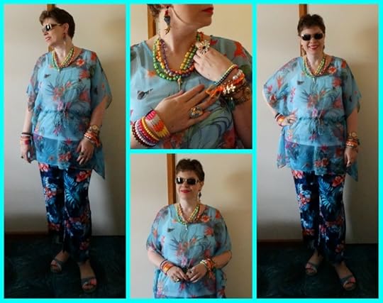 I got this gorgeous jungle cape late in the year too. For $100 it’s gorgeous and goes with my short kaftan top. I gotta smile more in pics.