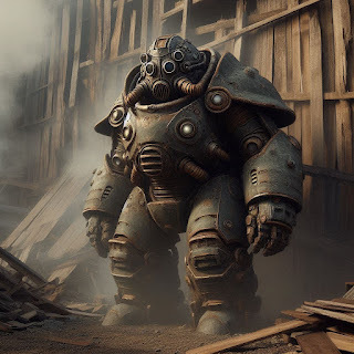 The insectoid “head” whirred slightly, motors turning as the human being within gazed down upon me; through the visor, I could see his small rodent eyes had no more mercy within them than the cold glass lenses that supplemented his vision. There would be no pity or quarter from this one, perhaps even less than had he been purely a machine.