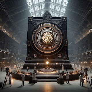Upon the third tone, a great golden seam opened upon the face of the sepulchre, one that neatly rent it top to bottom. It was beginning to open, and as the two halves separated, all within that great hangar, captor and captive alike, watched with the same rapt fascination, the room filling with a different light, one not bright and cold, but rich and golden and vivid.