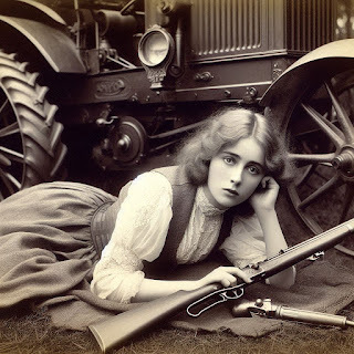 My efforts at engaging the Caddiganites having come to naught, it was all I could do to keep myself from suffering mortal harm from their malice; bullets kicked up dust all around me, and I was forced to again retreat back further beneath the tractor, where I soon found myself most frustratingly unable to do anything but keep myself bodily intact behind the shelter of my skirts.