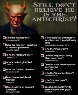 Others had very different ideas, ones that seem a little closer to the reality of who Trump is. Among some fringe communities of evangelicals who haven't missed that Trump is the exact opposite of Jesus in every way, the failed assassination attempt and the wound to Trump's ear fulfilled the terms of Revelation 13:3. "There it is," they said. "There's the head wound, and the wondering world!" Trump is, they suggest, the Little Horn, the adversary of Christ, whose amorality, worldliness, and pathological falsehood marks him as the Antichrist. The end times are at hand!