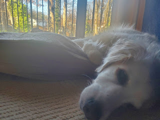 She can still stand, and still walk, although even with the human-strength doses of gabapentin that keep her arthritis discomfort away that clearly has gotten more and more difficult. Occasionally, she'll have moments of friskiness, as she did bounding about in the snow on our recent trip to more wintry climes. She always did love snow. Mostly, again, she sleeps.