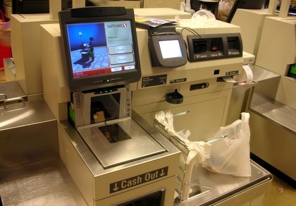 I filled my basket, and wandered over to the short line at the self-checkout, the machines that simultaneously let large grocery chains hire fewer workers and open up the option of not ever, ever talking to another human being face to face.