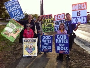 And there, I was given a conceptual handle to help me come to terms with secular Charlie Hebdo, which, though often willfully offensive, comes nowhere near the wildly horrible displays of the religious Westboro troupe.