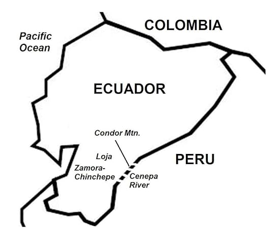 Background The 1981 Paquisha War (previous article) between Ecuador and Peruleft unsettled the border dispute regarding sovereignty over the Condor Mountainrange and the Cenepa River system locatedinside the Amazon rainforest. Peruvianforces achieved a tactical victory by destroying three Ecuadorian forwardoutposts and re-established control over the whole eastern side of the Condorrange, although the Ecuadorian government continued to claim ownership over thewhole Condor-Cenepa region. In the yearsfollowing the Paquisha War, the two sides strengthened their areas of controlin the region, with the Ecuadorians occupying the peaks and western slope ofthe Condor range, and the Peruvians at the Condor’s eastern slope and Cenepa Valley. Because of the thick forest cover, Ecuadorianand Peruvian patrols often accidentally encountered each other, which at thevery worst, led to exchanges of gunfire, but generally ended without incident,as the two sides had agreed to abide by the Cartillas de Seguridad yConfianza (Guidelines for Security and Trust), which lay down the rules to prevent unnecessary bloodshed.