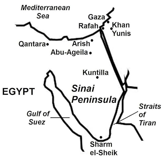 GazaStrip and Sinai Peninsula Onthe morning of June 5, Israeli planes attacked Egyptian airbases in the Sinai Desert and in Egypt proper (Map 10 shows key battle areas inthe Gaza andSinai sector). Hundreds of Egyptianplanes, nearly half of Egypt’sAir Force, were destroyed on the ground. Israeli air strikes continued the whole day, knocking out the EgyptianAir Force, which was the strongest among the Arab countries. In one coup, Israel gained air domination, whichdecided the outcome of the war.