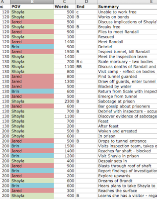 Now I’ve got past that point, and decided the text and order was settled, it was time to break the story out into chapters. This proved an interesting exercise in its own right. I flipped back and forth between my scene summary list and the actual text, looking for suitable chapter units.