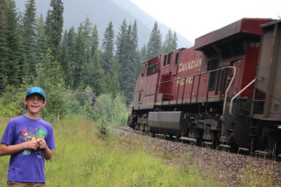 The kids were excited to see up-close some of the mile-long freight trains that accompany the highway across the province.