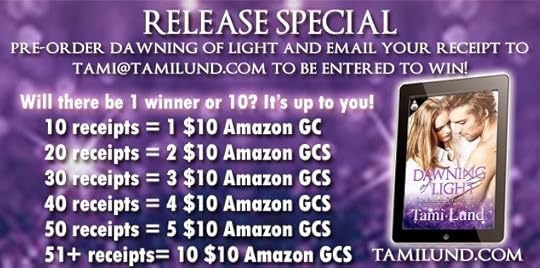 Pre-order Dawning of Light and email Tami the receipt to be entered to win!
