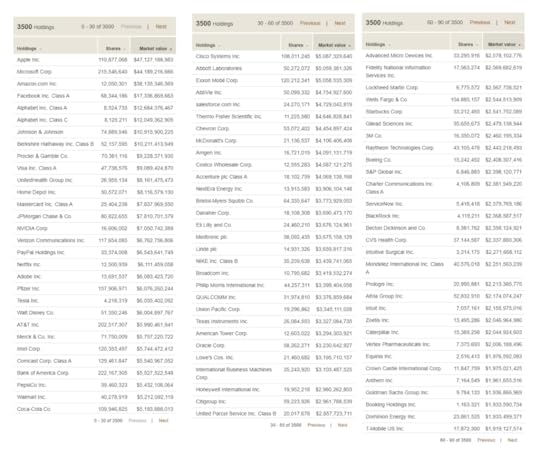 When you do this, you are buying a stake in 3500 companies at once(!), which is both impressive and overwhelming. How do you even know what you are holding?