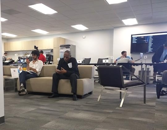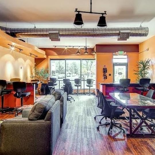 24/7 keycard access to a big, open room downtown (about 700 square feet) with couches, tables, benches, stylish design, etc. Plus an adjoining small kitchen area for our food.