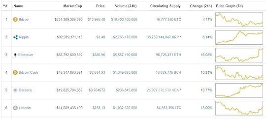 “Holy Shit!” is the only reasonable reaction. You’ve got Bitcoin with a market value of $234 Billion Dollars, then Ripple at $92 billion with Ethereum right behind at $85,792,800,592.