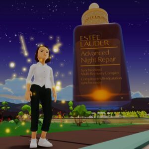 Bacelar described the Decentraland metaverse Fashion Week activation pop-up which promoted the top selling Advanced Night Repair skin care product. The wearable NFT gave users’ avatars a virtual golden glow that went Viral.