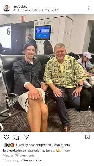 Lars Løkke Rasmussen, The Minister of Foreign Affairs of Denmark wore a grass-juice shirt to the airport after the Sustainability Summit held during the 78th UN General Assembly at Climate Week in New York City. He was seen with designer Henrik Vibskov, who collaborated with Pond, a biomaterials textile company in creating the grass juice shirt. The shirt made a second appearance on New Year’s Eve when Lars Løkke posted a selfie viewing the fireworks in Denmark on Instagram.