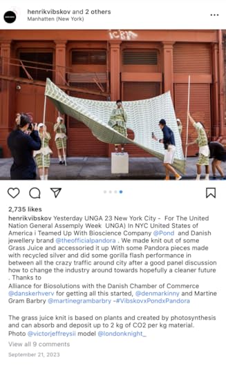 This was an unusual collaboration between the world’s largest jewelry company, a world renowned artist and fashion designer, and a bio-materials start-up that is crafting knit fiber from grass juice. Together, they showed a level of responsibility in the private sector that is driving the innovation needed to fulfill changing policies towards the green transition.