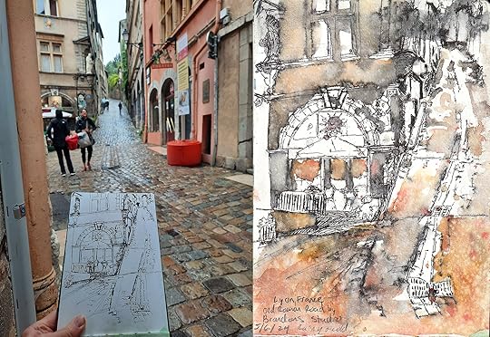 While I reflected on the closing chapter in one area of my life, the rain-soaked, ancient roman roads of Lyon echoed the melancholy optimism in my playlist. The rainwater streamed off my watercolor sketches and faded the saturated pigments before they could dry. The pen and ink spread like rorschach blotted inclinations.