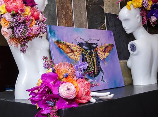 For those who follow my work, you know Natural science has been a strong source of inspiration. My “Natural Selection” series is a collection of insect specimens for people who would rather not collect actual insect specimens. Through the use of expressive brush strokes and wild color applications, I like to bring these fascinating creatures into the realm of art and interior design. Cafe Grumpy recently embraced the collection, see events here. Also, BFloral and I coordinated on an event installation combining art with floral design and I continue to look for celebratory collaborators and natural science conspirators.