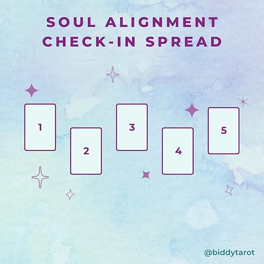 What am I inviting into my life right now?What is this opportunity bringing into my life?How is this opportunity in alignment with my soul purpose?What is my best course of action with this opportunity?What lesson am I discovering in the process?Of course I'd love to see how this goes for you – once you've done your Soul Alignment Tarot spread, post a pic on Instagram and tag me @biddytarot!