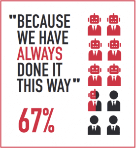 In our research for Courageous Cultures, 67% of respondents reported that their manager was stuck in “that’s the way we’ve always done it” thinking.