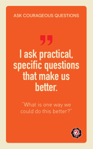 Hi Karin, “I attended your Courageous Cultures, how to Read Courageous Cultures with your team book club, and we loved it. We are using the book and we’re reading it. The good news is we’re getting SO MANY IDEAS. I continue to respond with regard (with gratitude, information, and an invitation) to the ideas I receive. The team knows I want their ideas, so they keep bringing me more. Now I have too many ideas. I don’t want to crush team innovation, but I can’t possibly use them all.