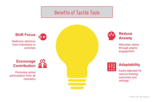 A 2020 study in the Journal of Applied Cognitive Psychology found that when people use multiple senses, including touch, learning outcomes improve. (Applied Cognitive Psychology, 2020)A 2022 study in the International Journal of Training and Development showed that “serious play” and tactile learning activities reduce social anxiety and encourage open idea generation among adult learners. (IJTD, 2022)And, research published in Frontiers in Psychology (2021) found that external prompts like cards or physical tools make it feel safer to engage. Frontiers in Psychology, 2021)Tactile tools create psychological safety in training by: