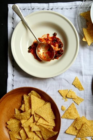 Obviously I wanted to put my own spin on it though so opted for a generous dollop of harissa instead of my usual chilli spice combo (cumin, paprika, cayenne etc.) and I’m pleased to say it really worked a treat. You can easily up the spice ante with a dash more chilli if you please but one birds eye (sans seeds) was sufficient for me, especially as I didn’t want the harissa overshadowed by mega-heat. I was tempted to serve this with Hodmedods quinoa (also British grown!) but went in for my favourite chilli accompaniment instead … tortilla chips. Oh, and don’t forget that guac/avocado for added creaminess that will offset the richness of the tomato sauce.