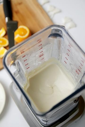 Once smooth add the orange juice, remaining agave and orange extract and blitz to combine. Transfer to a bowl and chill for at least an hour.