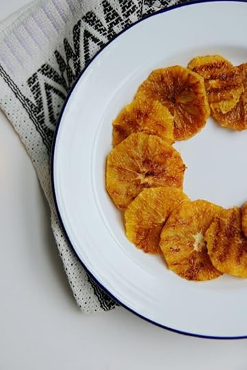 Heat a griddle pan on a medium/high heat. Slice the skin off the oranges and cut into thickish rounds (otherwise they will disintegrate on the pan) and place on the pre-heated griddle pan. Sear the orange slices for a minute or so on each side before transferring to a large platter or dish.