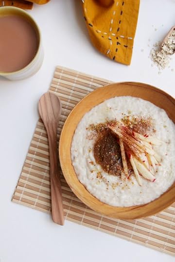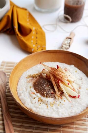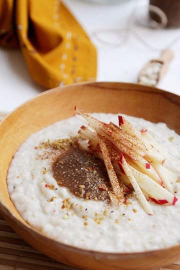 serve with a dollop of chia jam, handful of apple matchsticks, sprinkle of ground cinnamon and a smattering of crushed seeds. et voila, breakfast is ready.