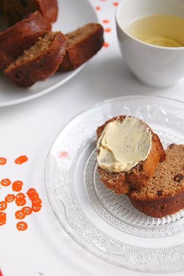 whilst it cools, make the glaze by placing the sugar and water into a small saucepan. simmer until it reduces before brushing over the warm bread. let the bread cool completely before slicing. serve with a generous smear of vegan butter and a hot cup of tea.
