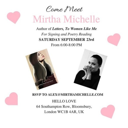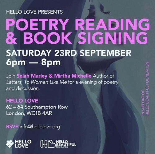 LONDON this coming Saturday September 23rd I’ll be doing a signing and reading @hellolove.home in collaboration with my girl @selahmarley! A portion of the sales will go to charity. So excited to meet many of you! RSVP! #MMCM #LettersToWomenLikeMe #ElusiveLoves #LettersToTheMenIHaveLoved #London