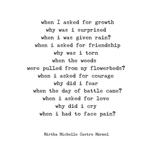 I’ve had an interesting day, and all i could think of was this piece i wrote for my next book. Why is it that humans ask God, the universe, (whatever they believe in) for better opportunities, friendships, love, wisdom, experiences; yet the moment we suffer pain, lose a friendship or romantic relationship, job, are challenged, or tested, then we look up and cry out WHY? When we are simply living out the same things we were asking for. To gain one must learn to give. To win one must learn to lose. And in the journey in between is where wisdom is attained. #MMCM #18inchesthebook #PainIsNecessaryForGrowth
