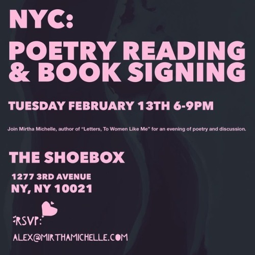 NYC! On February 13th I’ll be at @theshoeboxnyc reading and sharing from my books! I want to meet you and see you again! We’ll have books available on site and I will be signing them as well. So grab your friends and let’s celebrate V-Day together! Make sure to RSVP to ALEX@MirthaMichelle.com so we have a headcount! #MMCM #letterstowomenlikeme #letterstothemenihaveloved #ElusiveLoves #NYC