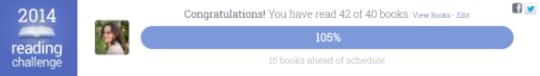 As I did in 2013, I set my Goodreads Challenge target at 40 books. Unlike last year, I finished it in the last week rather than in December. However, I feel a bit like I cheated, because among my 40 this year are three novellas and nine childrens books (mostly by Roald Dahl). So my new goal is to get to at lest 52 books by the end of the year, so that I’ve read 40 adult or YA novels. That’s also one book a week, which is quite nice!