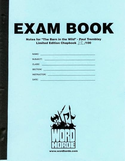 The truth, of course, is in the content: courtesy of publisher Ross E. Lockhart and the 19 TCoOL authors, the Word Horde web site will present a brief excerpt from each of the 17 stories, beginning with "The Harrow" by Gemma Files (on July 2) and continuing every Monday, Wednesday, and Friday over the next few weeks. So if you are still fence-sitting and haven't purchased a copy of TCoOL as yet, please do check out these mini excerpts from all 17 stories. But, lest we forget, it's the mind -- and writing -- of Laird Barron that provided the inspiration for these stories.Back to the TCoOL goodies: if you had ordered the Deluxe Pack, you would have received a numbered "chapbook" by Paul Tremblay entitled "Notes for 'The Barn in the Wild.'" The story is a "found notebook" story -- and the chapbook is comprised of the notebook pages themselves.