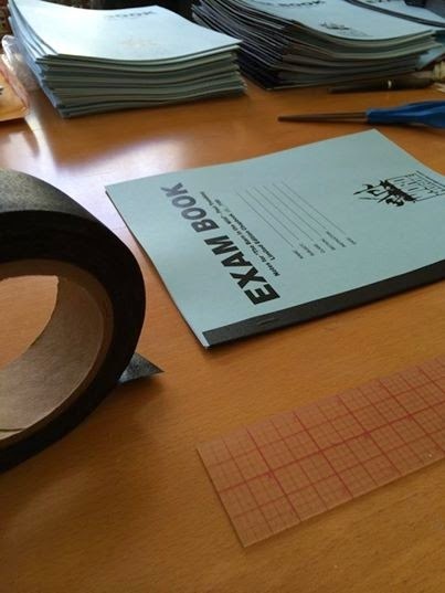 My copy is not numbered but is rather a "PC" copy -- a Presentation Copy that I received as one of the book's contributors. Now here's a behind-the-scenes peek at the publisher hand-assembling the chapbook: