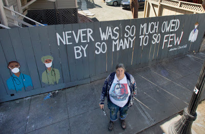 Denise Olenak finishes a mural in San Jose, California on Tuesday, March 31, 2020, honoring health care workers fighting the Coronavirus pandemic. (Karl Mondon/Bay Area News Group)