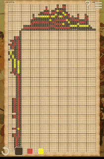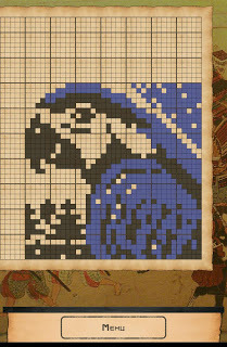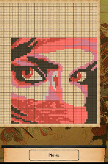 I have now completed all the puzzles through level 8, which is the "Shogun" or "Expert" level. The game has a level 9, but all the puzzles are random. By that I mean the puzzles are simply random patterns, squares, and colors. Once a puzzle is completed, a return to the main menu will automatically clear the puzzle and randomize the patterns, squares, and colors again. When I get desperate enough for a CrossMe Color fix, I will work a random puzzle, but I'm not particularly fond of them: I prefer a puzzle of an actual picture/object, which is saved when the puzzle is completed.